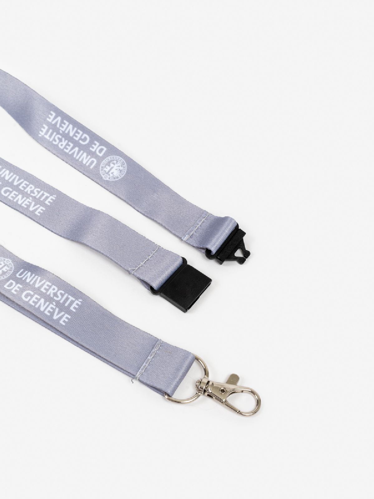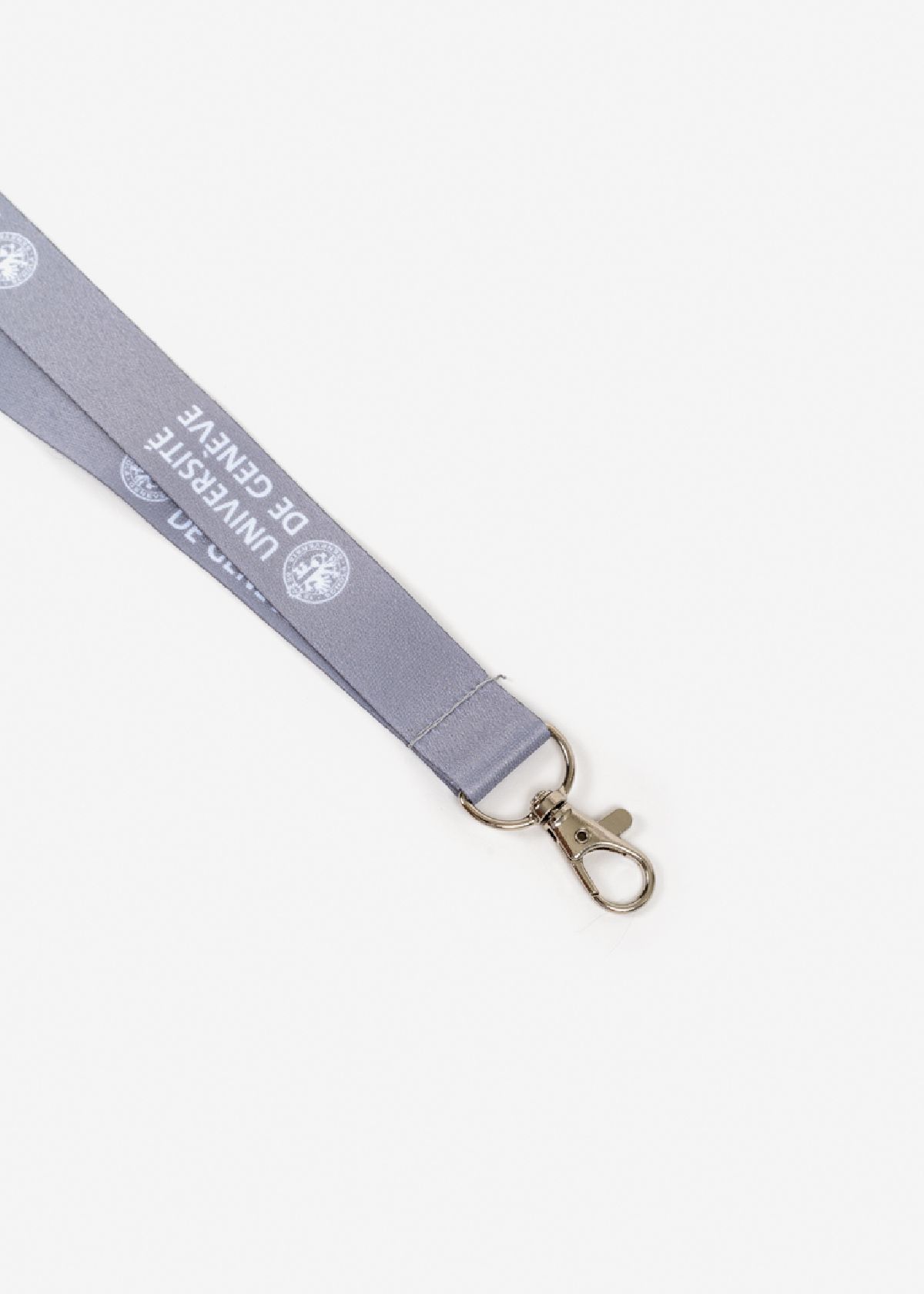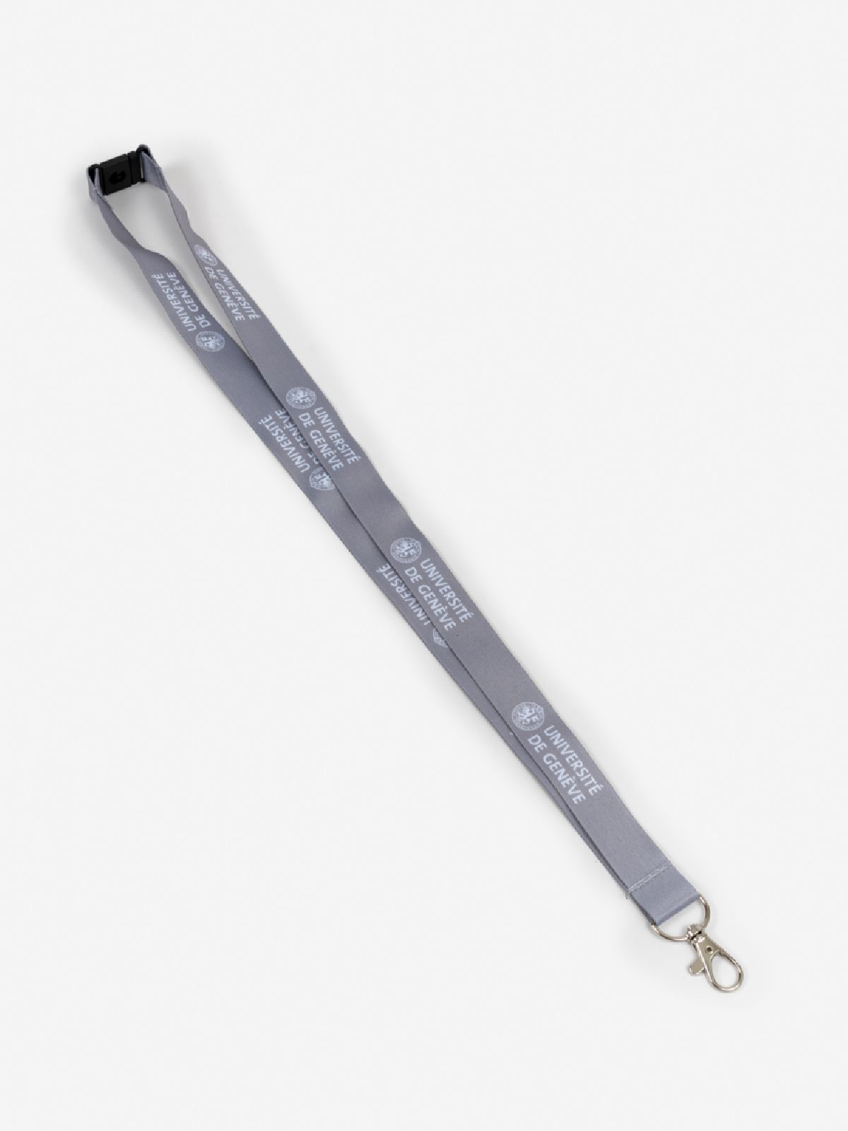 Tour de cou, siglé du logo de l'Université de Genève. Possède une attache sécurité. Disponible en deux coloris.
